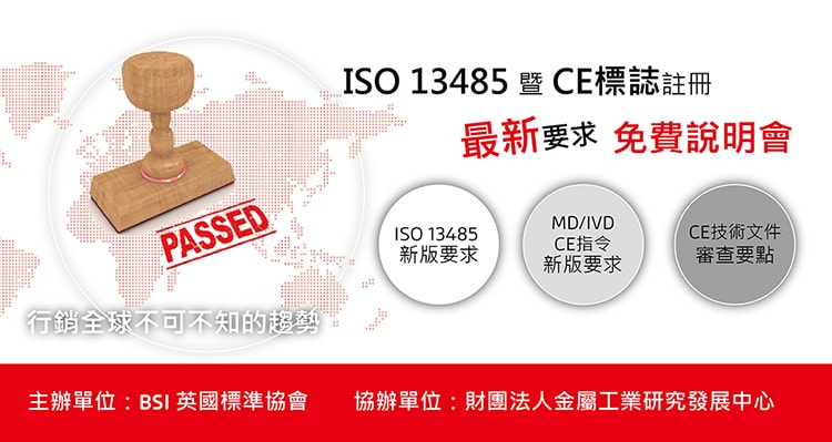 ISO 13485 最終國際標準草案(FDIS)版即將發布,主辦單位BSI英國標準協會及協辦單位金屬工業研究發展中心特別安排 ISO 13485、上市前審查與醫材產業專家,以新版標準和 CE 標誌註冊要求為主軸,說明如何將法規要求與品質管理和產品設計開發結合以符合目前國際趨勢,歡迎醫療器材業者或有志於從事醫療器材研究開發人士報名參加。 |